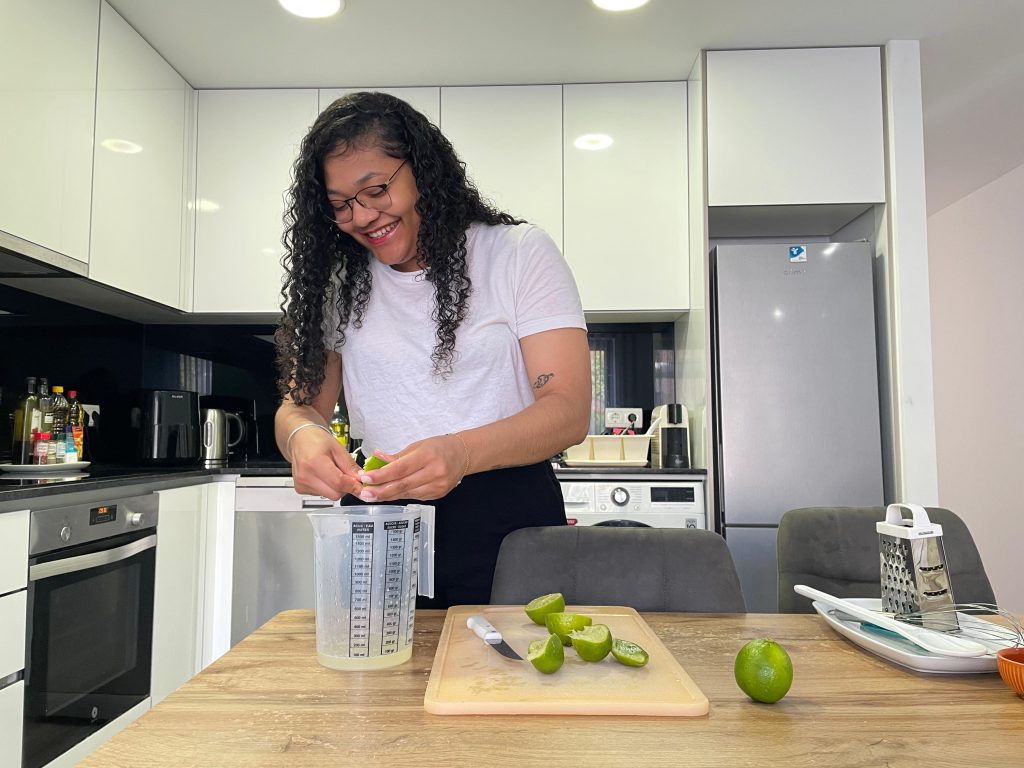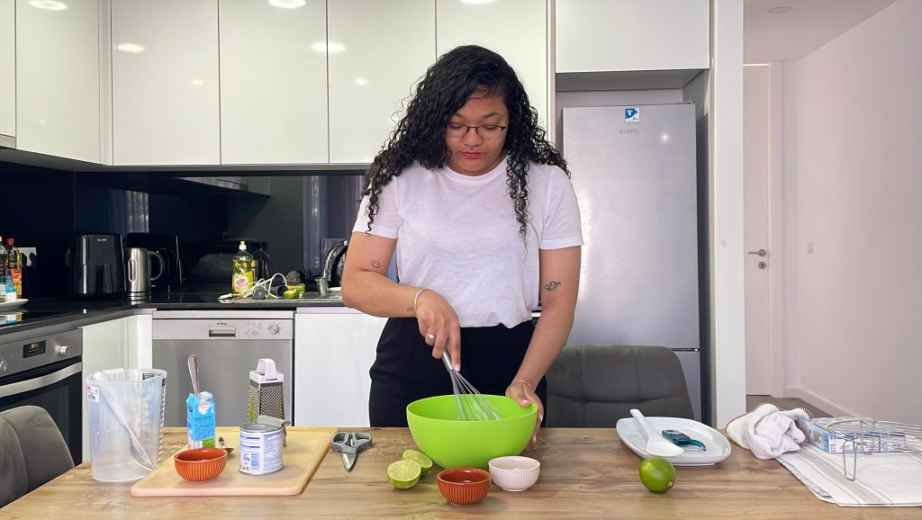 O sol brilhava e a temperatura era amena. Era sábado e estávamos reunidas na casa de Ana Karolina, 26 anos, empresária pasteleira está um pouco nervosa e intimidada com o facto de ter de falar para uma câmera. Mas essa timidez desaparece assim que começa a preparar a sua receita de mousse de limão.