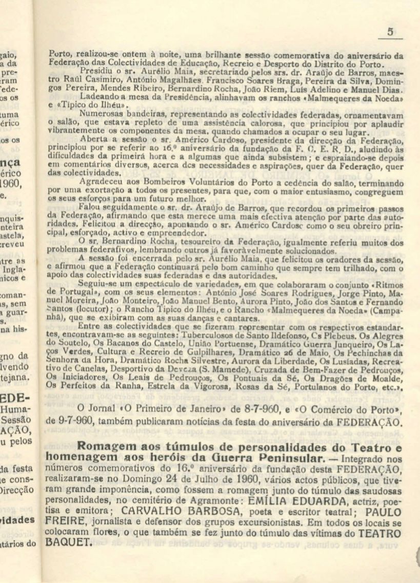 Em 1956, juntamente com a Federação das Coletividades do Distrito do Porto encarregou-se de arranjar um local para os ensaios e passaram a ser mais reconhecidos. Em 1958 concorreram às Marchas sanjoaninas, organizadas pelo Clube Fenianos Portuenses. Passado um ano mudaram de local e conquistaram o primeiro lugar das marchas. Como estavam a ter muito prestígio, tiveram que se mudar de novo e encontram a travessa de Miraflor, onde atualmente estão. Em 1967 ganharam no espetáculo do Rancho e apresentaram-no na RTP. Acabou o Rancho Adulto e veio o Rancho Infantil.