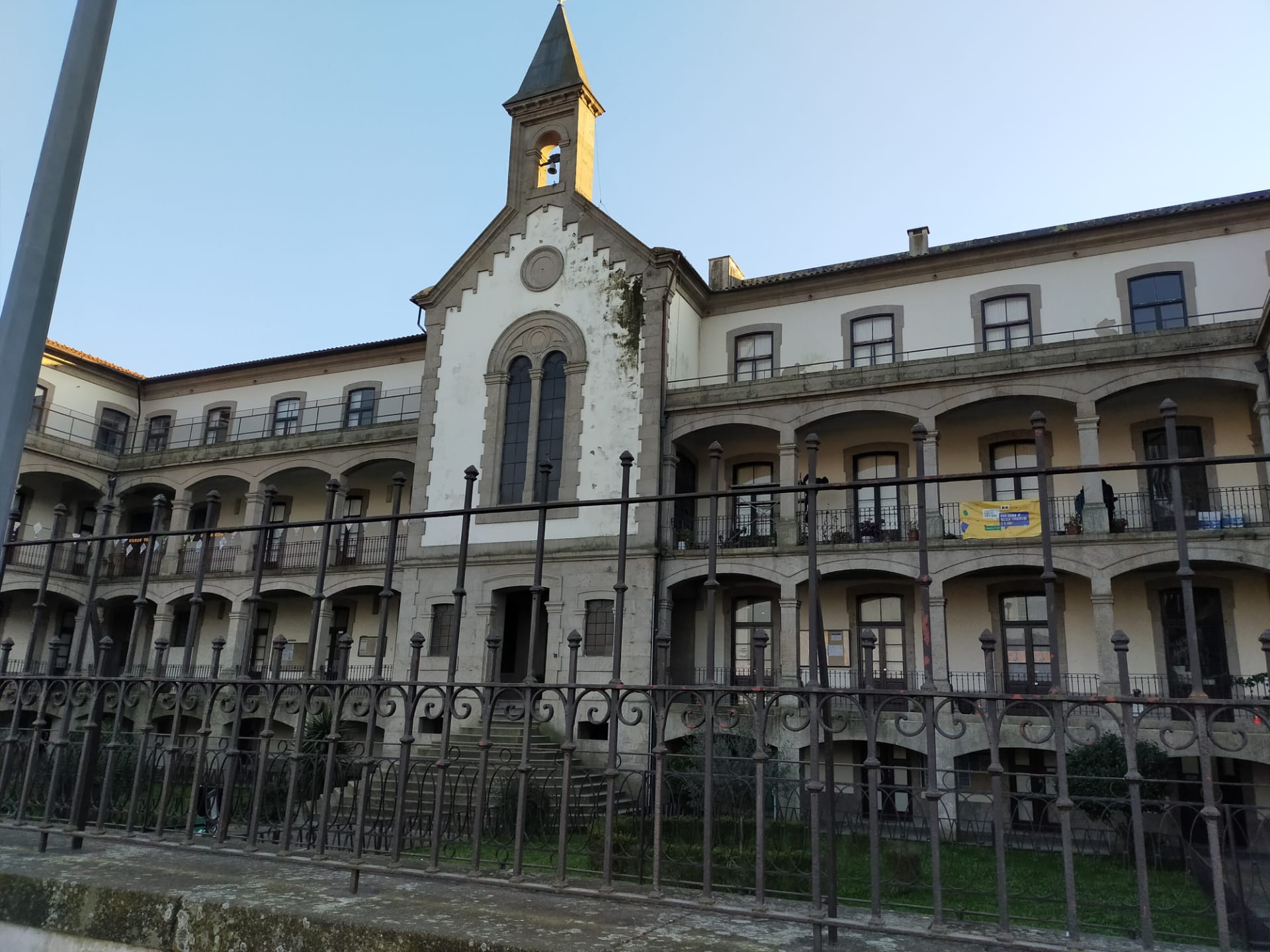 Perto do edifício principal passam vários rapazes, alguns sozinhos, outros em grupo. Este espírito jovem não se enquadra com o desgaste e envelhecimento do prédio que os acolhe.