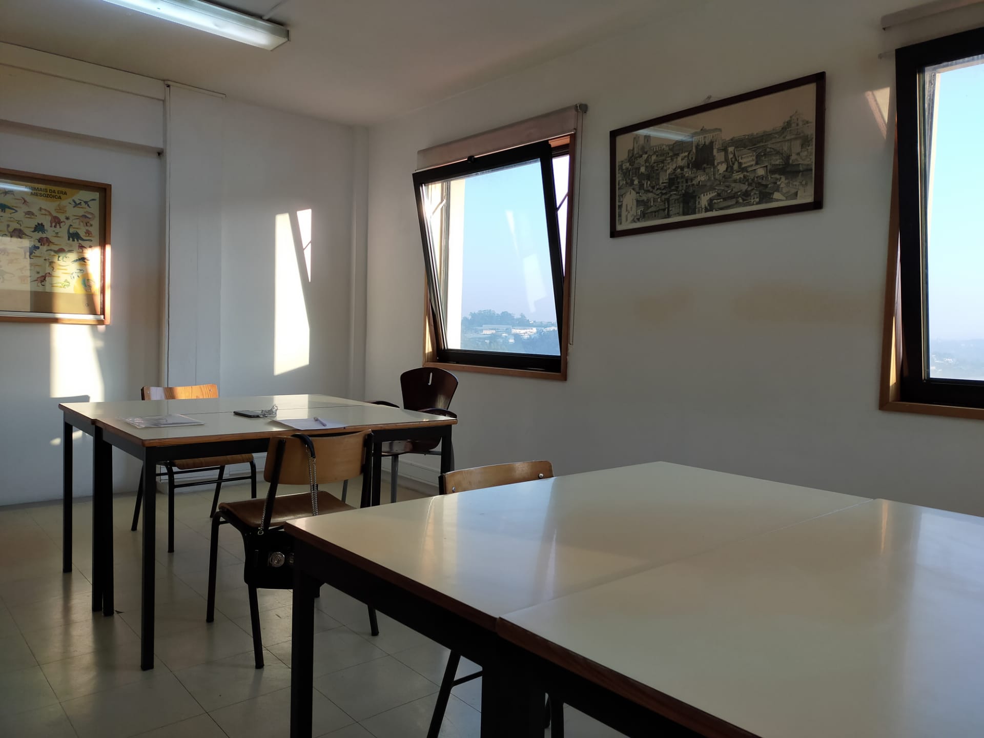 À entrada aparece Sandra Pires, técnica superior de Educação Social, que mostra o caminho em pedra até um anexo relativamente mais moderno e luminoso, nas costas do Centro Juvenil de Campanhã. Uma sala já está preparada para receber pessoas que visitam o espaço. As mesas de madeira clara contrastam com a estante escura, mas condizem com os quadros de cortiça que dispõem alguns desenhos de crianças.