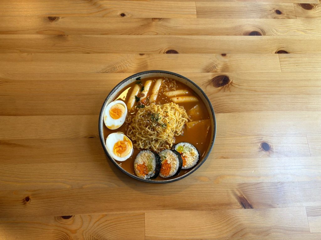 No meio da conversa com o #infomedia, a sul-coreana, ofereceu-se para confecionar um prato. Passado uns minutos, levou para a mesa um rabokki, um prato que junta ramen, bolo de arroz, bolo de peixe e sushi, envolvido num molho de pimentão extremamente picante, mas de uma forma positiva. A explosão de sabores do prato é indescritível por palavras, vídeo ou fotografia