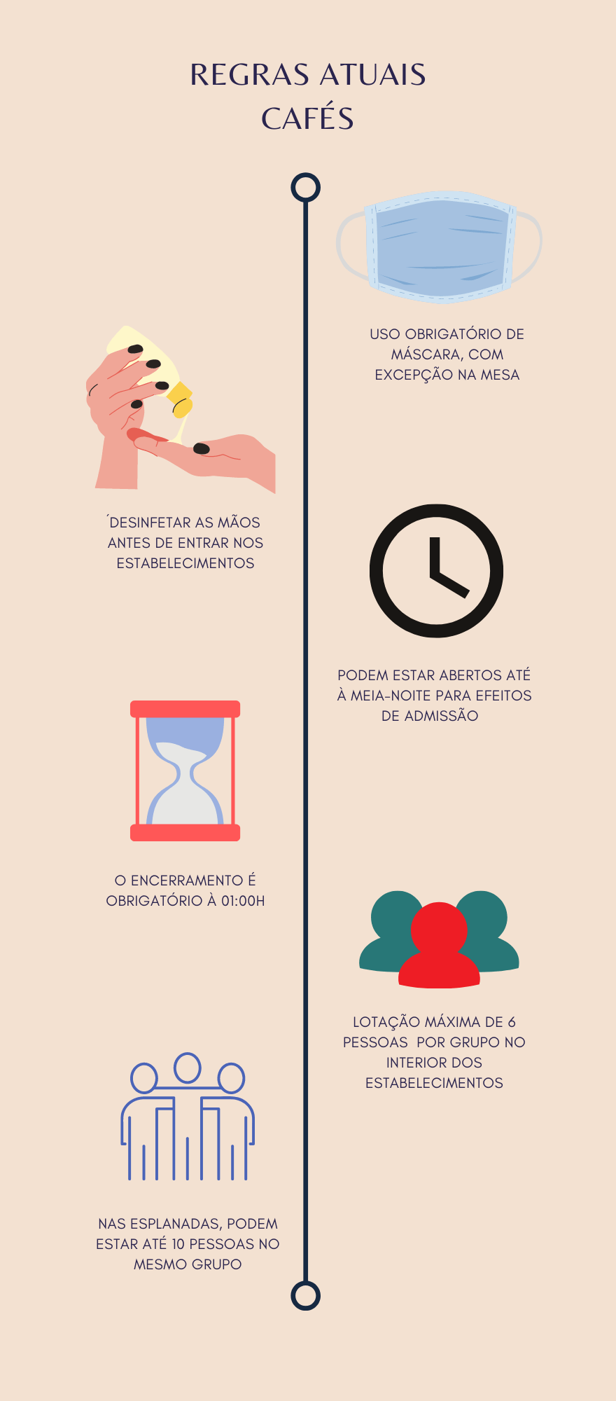 | A abertura dos cabeleireiros fez parte da primeira fase do desconfinamento. Porém, neste período, os cafés só serviam ao postigo. Num segundo momento, os clientes passaram a usufruir das esplanadas (num máximo de quatro pessoas). Já dia 19 de abril passou a ser possível consumir no interior dos estabelecimentos (até quatro pessoas) e nas esplanadas aumentou o número de pessoas para seis. |