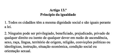 Além disto, o conceito de igualdade está também presente no artigo 13º da Constituição da República Portuguesa.
