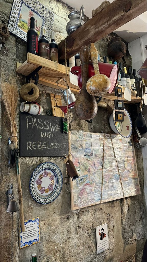 Ao entrar na Tasquinha Rebelo, sente-se uma atmosfera diferente. As paredes estão repletas de decorações únicas, muitas trazidas das viagens de Fátima, outras tantas oferecidas por clientes que por lá passam. Cada objeto conta uma história. A transformação do espaço foi feita toda pelas mãos de Fátima, com cuidado e atenção ao detalhe. “Fui a feiras, trouxe coisas das minhas viagens e, claro, muita gente me oferece peças especiais. Tudo aqui tem um significado.”, diz.